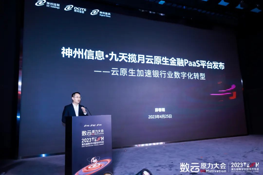 开幕式上的重磅技术发布环节,神州信息新动力数字金融研究院正式对外发布“九天揽月·云原生金融PaaS平台”(简称:九天揽月平台)。“九天揽月平台”具有“低代码、中台化、云原生”三大技术创新点,具备八大特点支撑和解决现有金融数字化转型架构平台中的主要问题。中科院院士梅宏、神州信息董事长郭为、开放原子开源基金会秘书长冯冠霖、中国互联网协会数字金融工委会执行副秘书长江艾芸等多位重量级嘉宾共同见证了“九天揽月·云原生金融PaaS平台”发布。